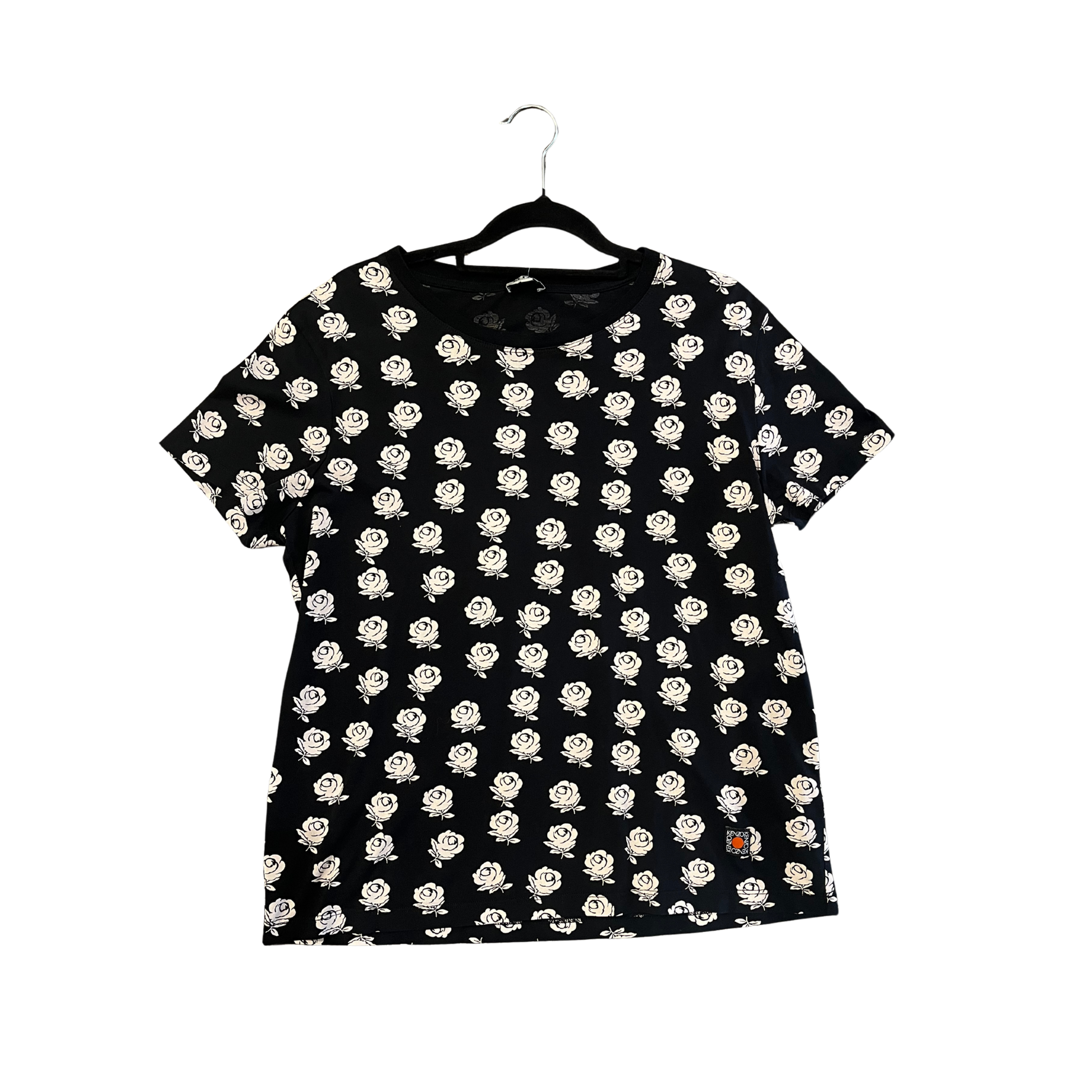 KENZO black white Cotton Floral Tee R0725